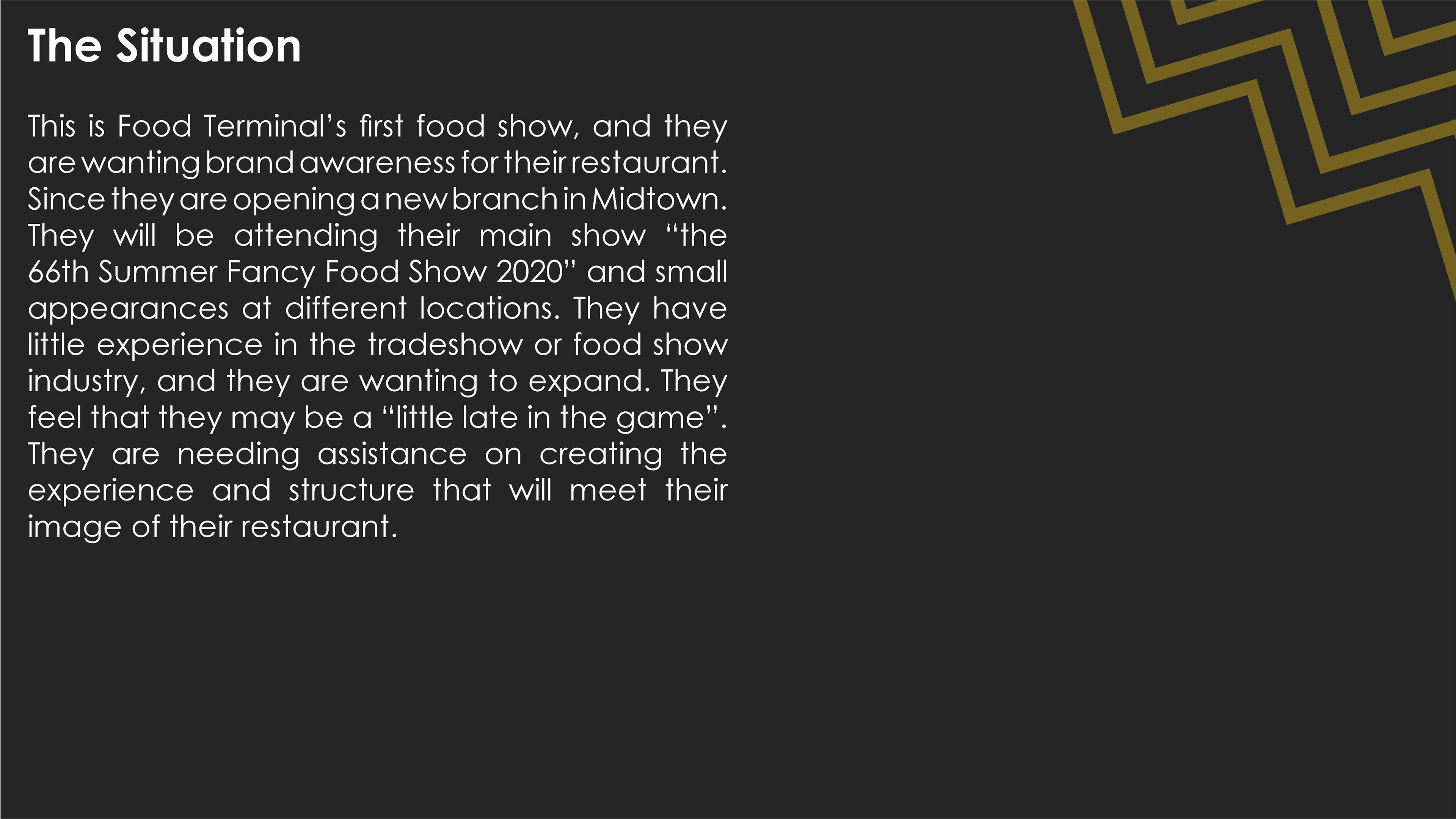 I came in 4th place for this beMatrix competition. Although this was a final project and a competition, we were given the freedom to choose a brand or company of our choice and come up with a marketing plan and experience. We also had to use the beMatrix modular system as well. I came up with the presentation layout, the experiential side, marketing plan, 3D architecture and made sure I maintained the consistency of the brand in the graphics I created.